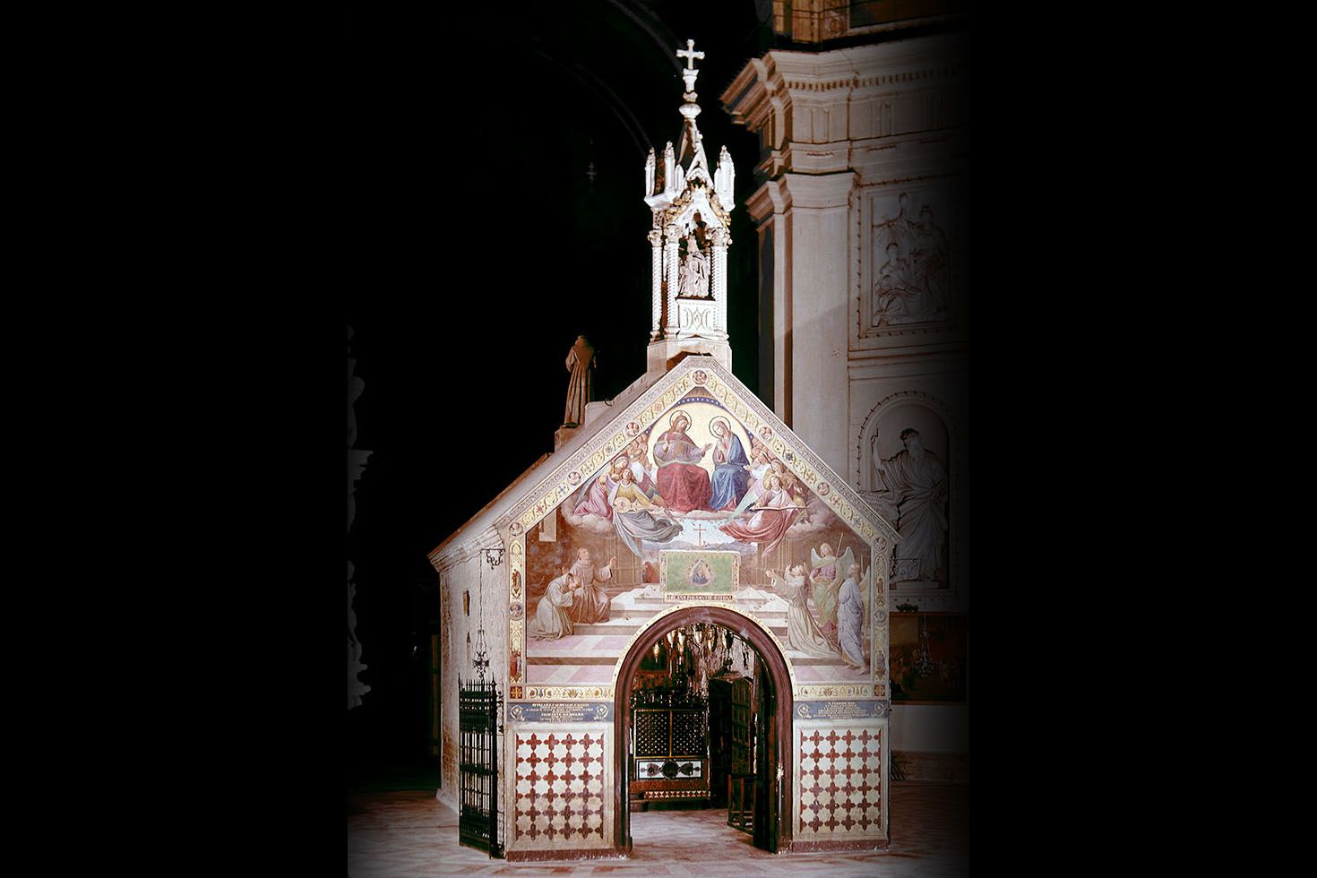 The Porziuncola ( “La Porziuncola”), a small, humble chapel located within the vast Basilica of Santa Maria degli Angeli in Assisi, is one of the